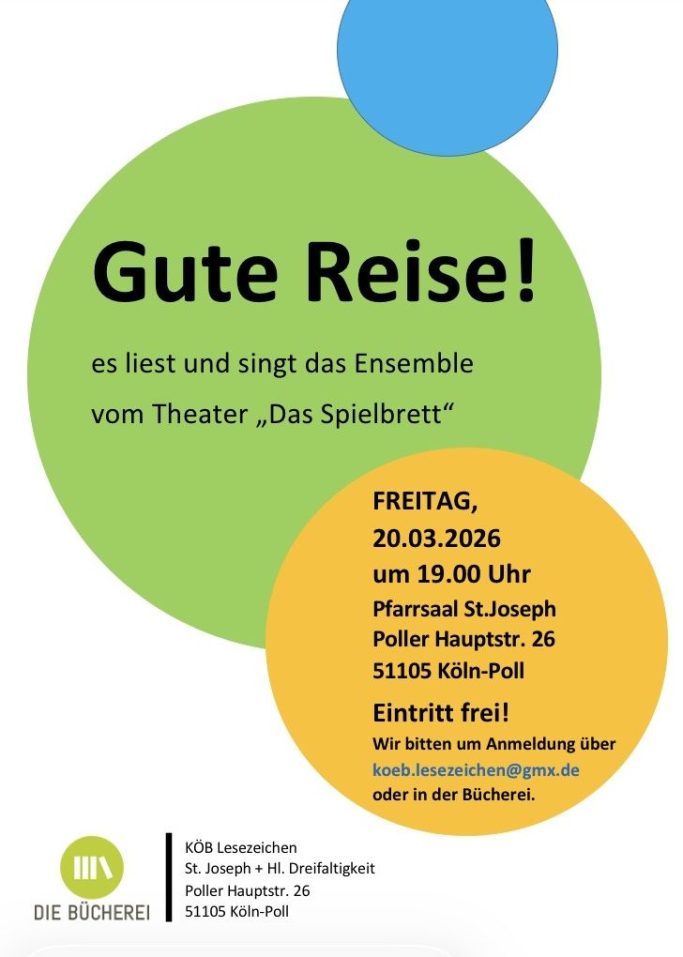 Veranstaltungsort ist der Pfarrsaal in der Poller Hauptstraße 26. Die Bar ist vor der Veranstaltung und in der Pause geöffnet. Wenn es Euch gefallen hat, freuen sich die VeranstalterInnen über Eure Spende, die in voller Höhe dem Bücherankauf der KÖB zugutekommt.
